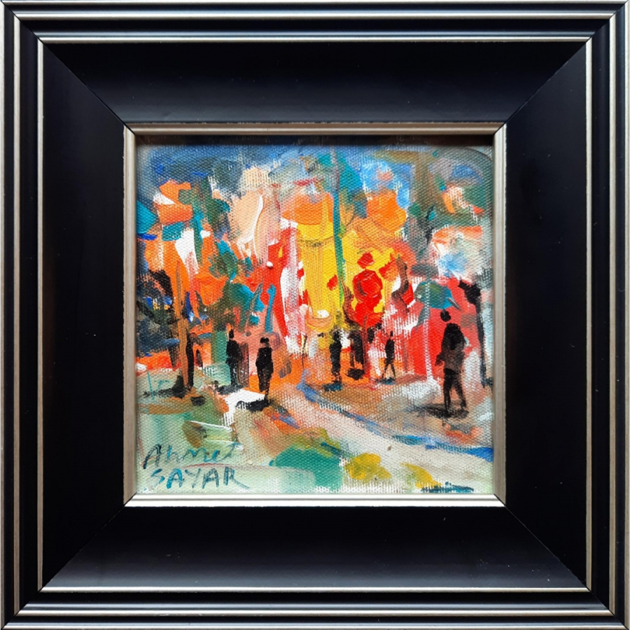 Ahmet Sayar. 15x15 cm. Tuval üzeri akrilik boya. İmzalı.