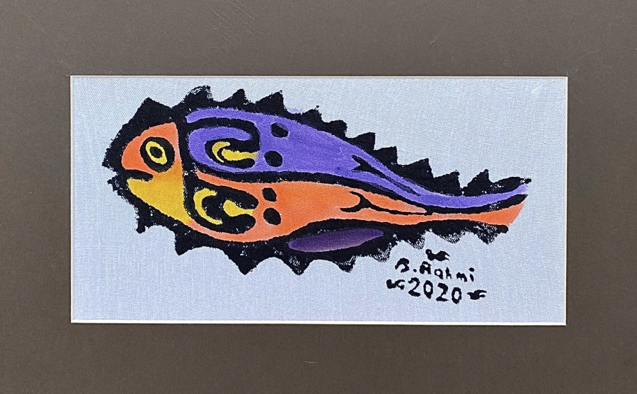 Bedri Rahmi Eyüboğlu. İstavrit. Paspartu dahil 23x36 cm. Bez üzerine el boyama, baskı yazma.