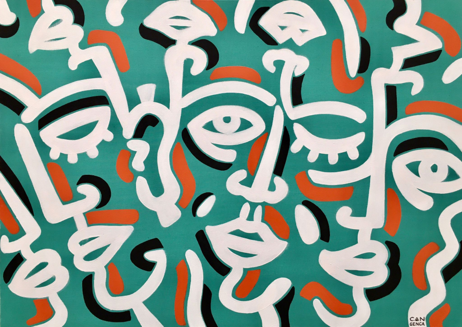 Can Genca. İç İçe Portreler serisi. 50x70 cm. Tuval üzeri akrilik boya. İmzalı.