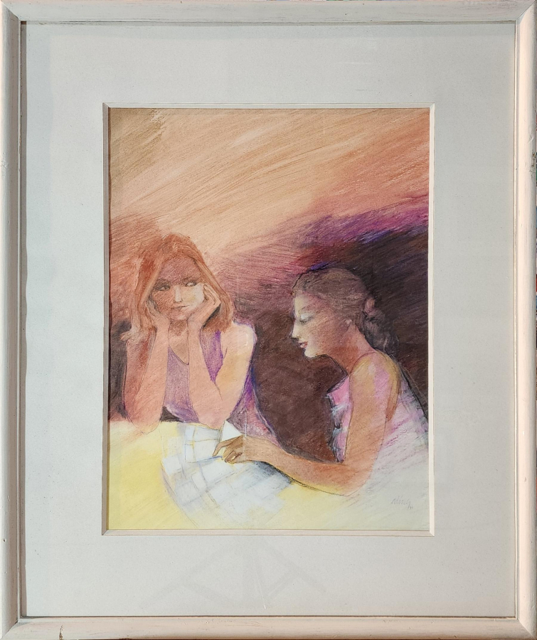 Mine Seçkinöz. 43x33 cm. Kağıt üzeri sulu boya. Çerçeveli. İmzalı.