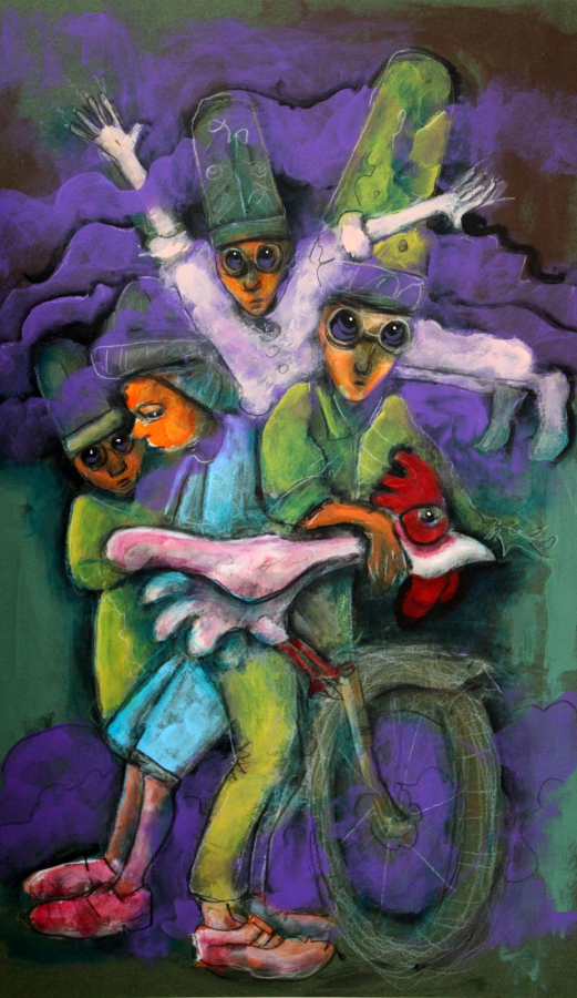 Mustafa Nail Kamacı. Düş. 26x44 cm. Mukavva üzeri akrilik boya. İmzalı.