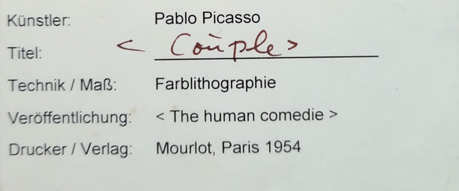 Pablo Picasso (1881-1973) The Human Comedy. Limited Edition litofrafi. 24x32 cm boyutunda. Verve dergisinde yayınlandıktan sonra Paris'te Mourlot tarafından 1954 tarihinde basılmıştır. Velin de Rives kağıdı üzerine yapılmış taş baskı litografi.