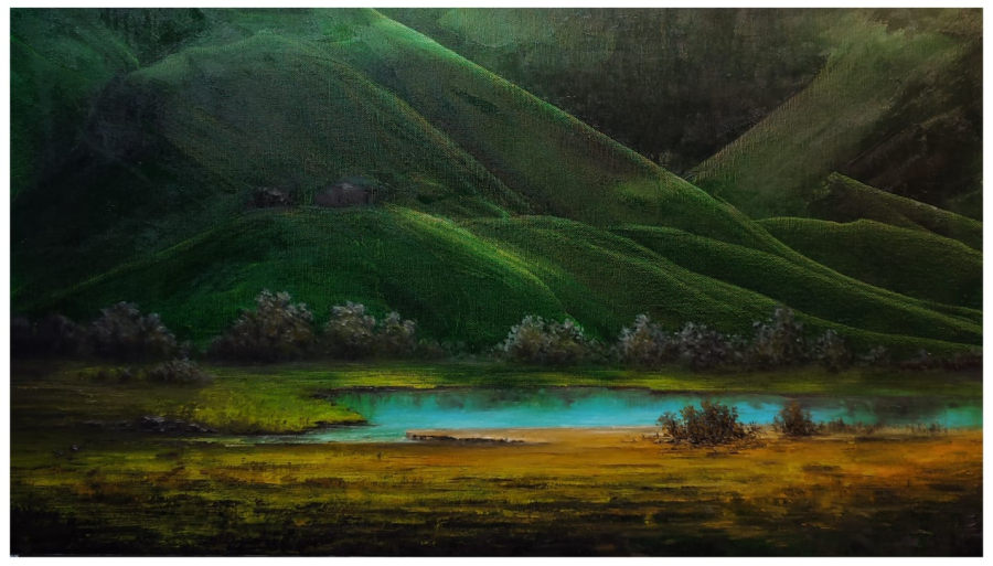 Turgay Sarı. Toprak Kokusu-122. 40x70 cm. Tuval üzeri yağlıboya. İmzalı.